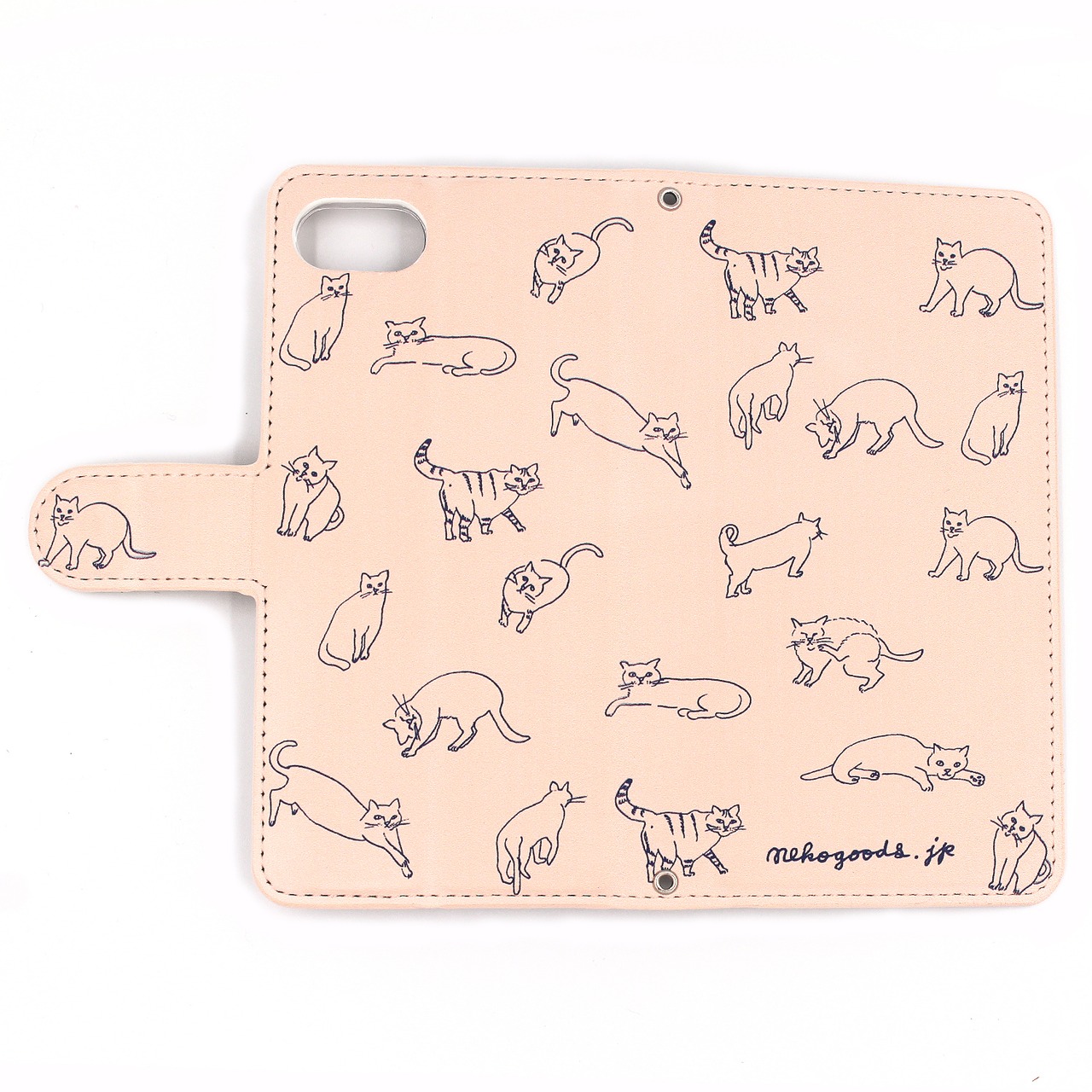 スマホケース ほぼ全機種対応 総柄 ピンクベージュ iPhone X / 11 / 8 / 8 Plus / 7 / 7 Plus / 6 / 6S Plus/SE / Galaxy Xperia AQUOS ARROWS DIGNO OPPO HUAWEI ZenFone ケース 手帳型 カバー スマホ 猫 可愛い おしゃれ 大人 ハチワレ ネコ ねこ 人気 スコティッシュ ロシアンブルー keiko oogami ブランド