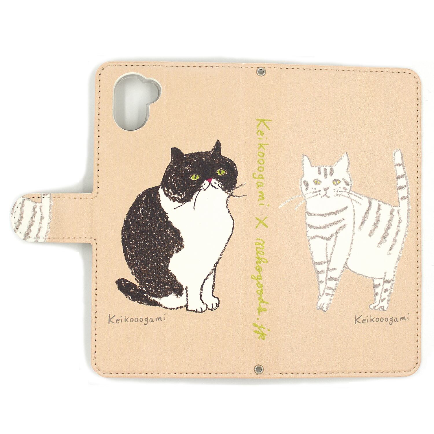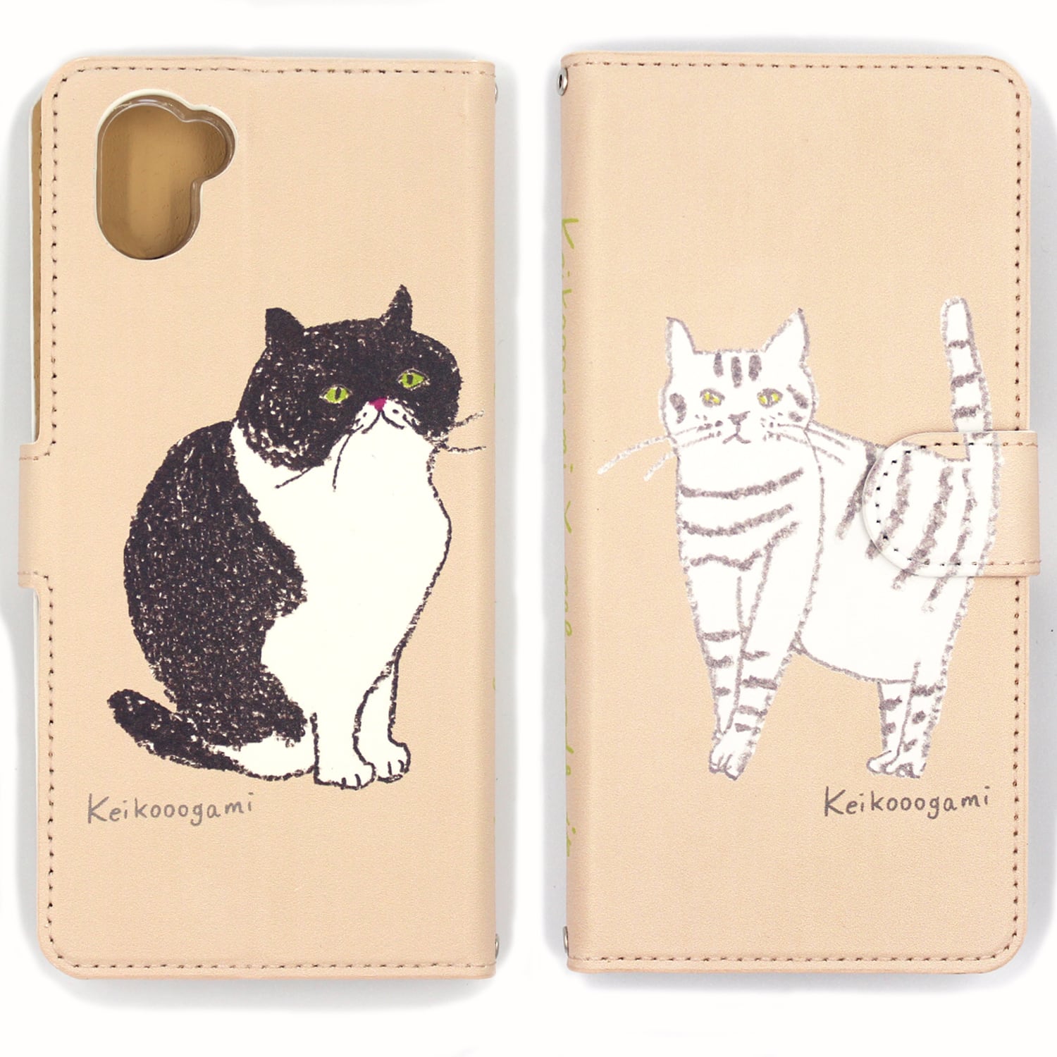 スマホケース ほぼ全機種対応 2匹の猫 ピンクベージュ iPhone X / 11 / 8 / 8 Plus / 7 / 7 Plus / 6 / 6S Plus/SE / Galaxy Xperia AQUOS ARROWS DIGNO OPPO HUAWEI ZenFone ケース 手帳型 カバー スマホ 猫 可愛い おしゃれ 大人 ハチワレ ネコ ねこ 人気 スコティッシュ ロシアンブルー keiko oogami ブランド
